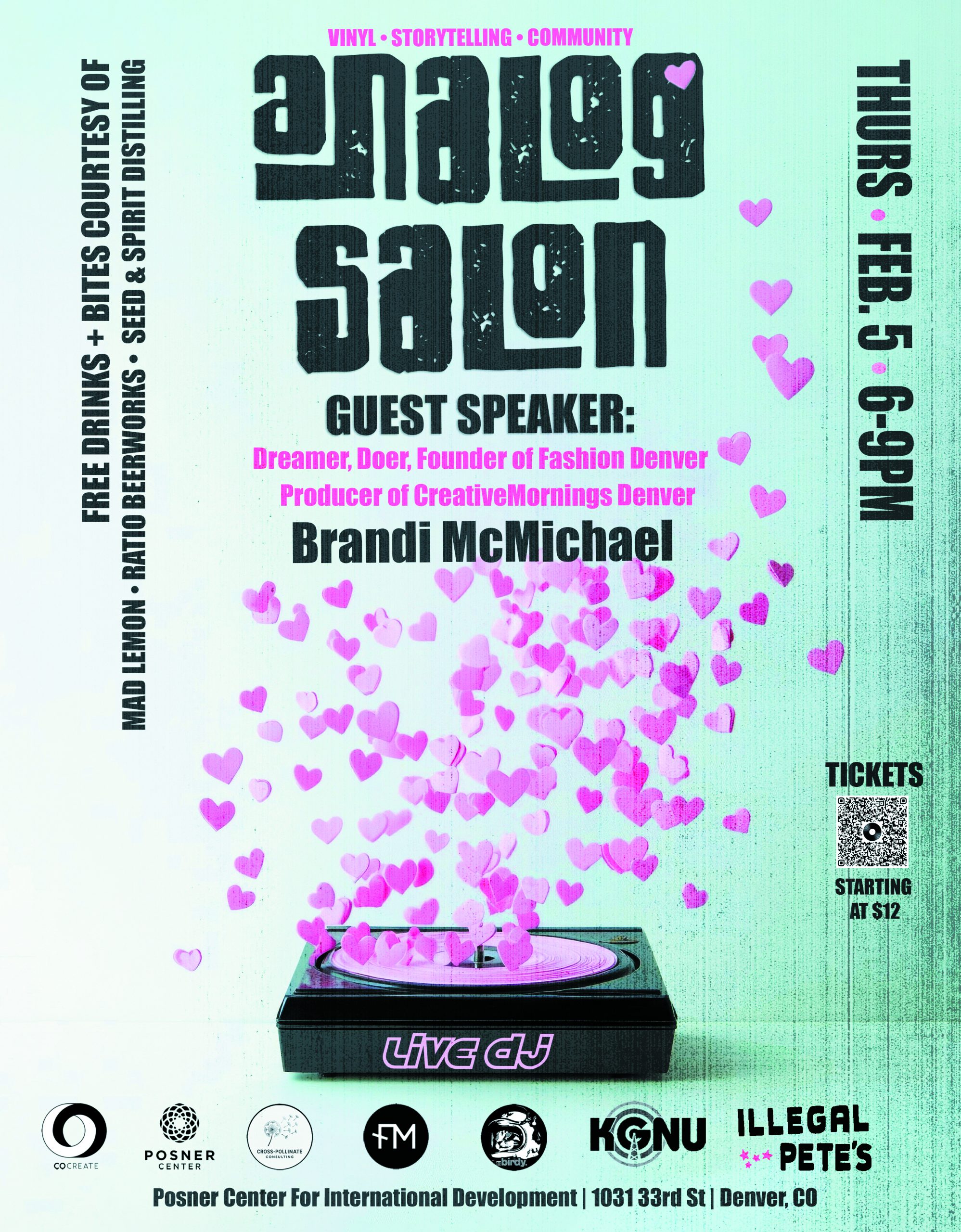 “A monthly vinyl listening salon where music and storytelling meet — featuring Brandi McMichael Producer of CreativeMornings / Denver.